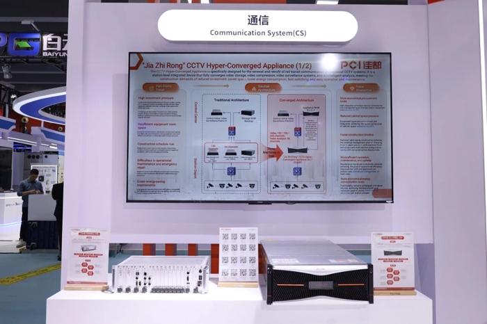 佳都科技带来了打破技术壁垒的综合监控系统平台,为地铁“大脑”升级;针对通信系统推出的“佳智融”超融合一体机,实现了设备造价降低35%、机柜空间节省60%,为城轨绿色转型赋能。